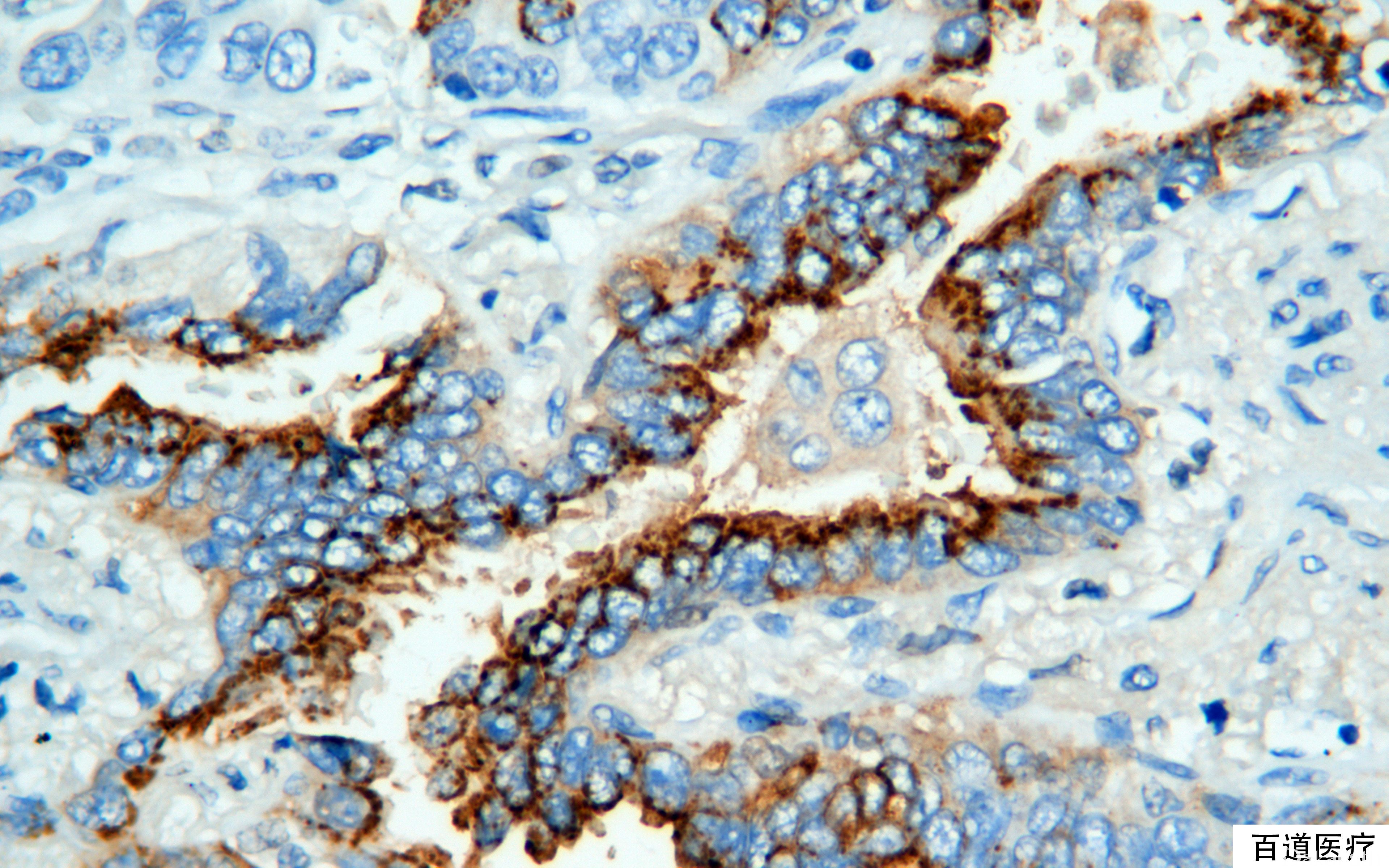 经常阳性(<75%,≥55%的病例阳性): 耳鼻喉鳞状细胞癌、肺鳞状细胞癌、脊索瘤、甲状腺腺瘤、胰胆管腺癌、胃腺癌、前列腺癌,≥gleason8 分、肺腺癌