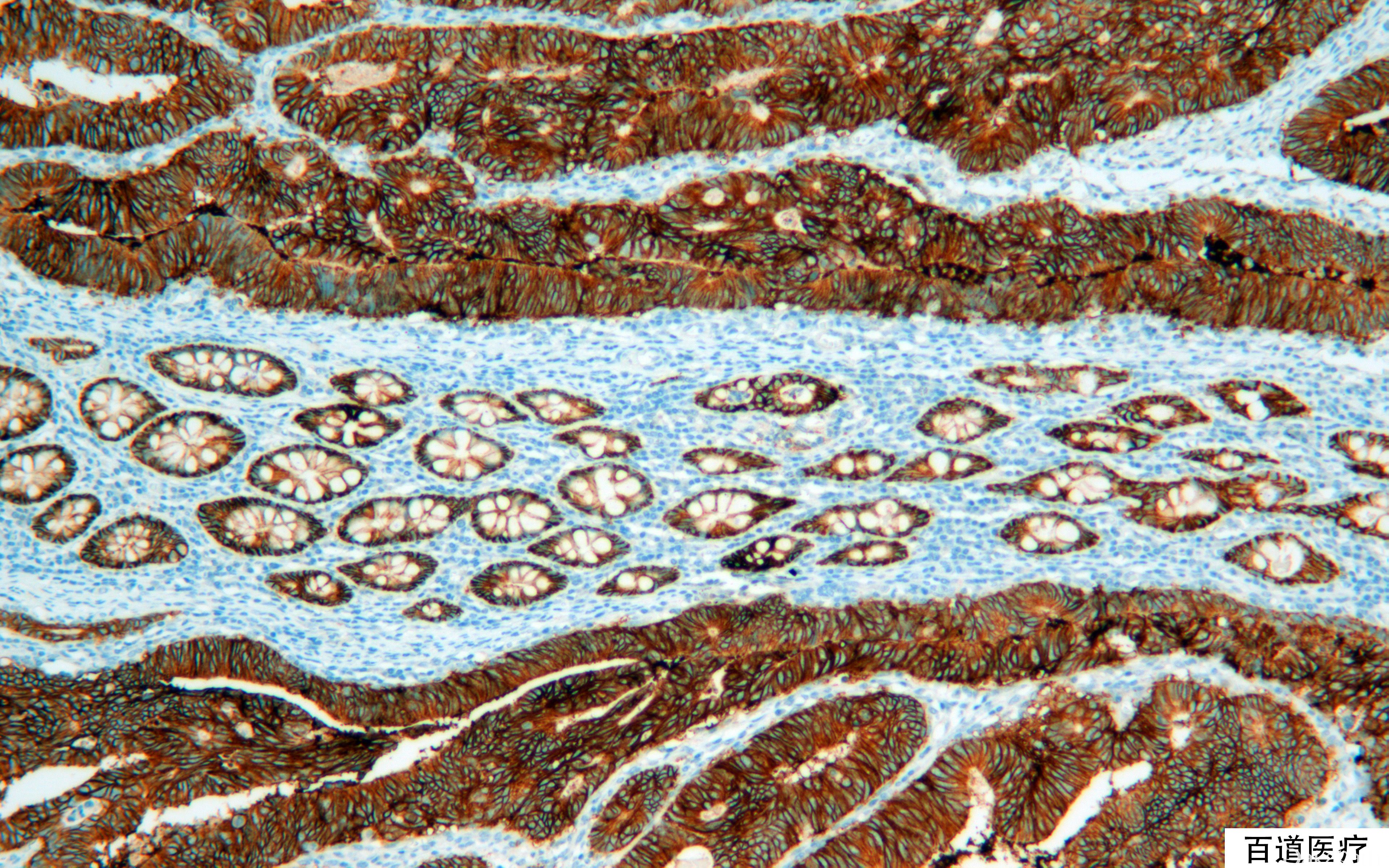 是由 MCF-7 乳腺癌细胞系免疫小鼠产生的单克隆抗体,识别的抗原广泛存在于除表层鳞状上皮和肝细胞外的人类正常和肿瘤性上皮细胞。MOC-31 比 BerEP4 具有优势。
