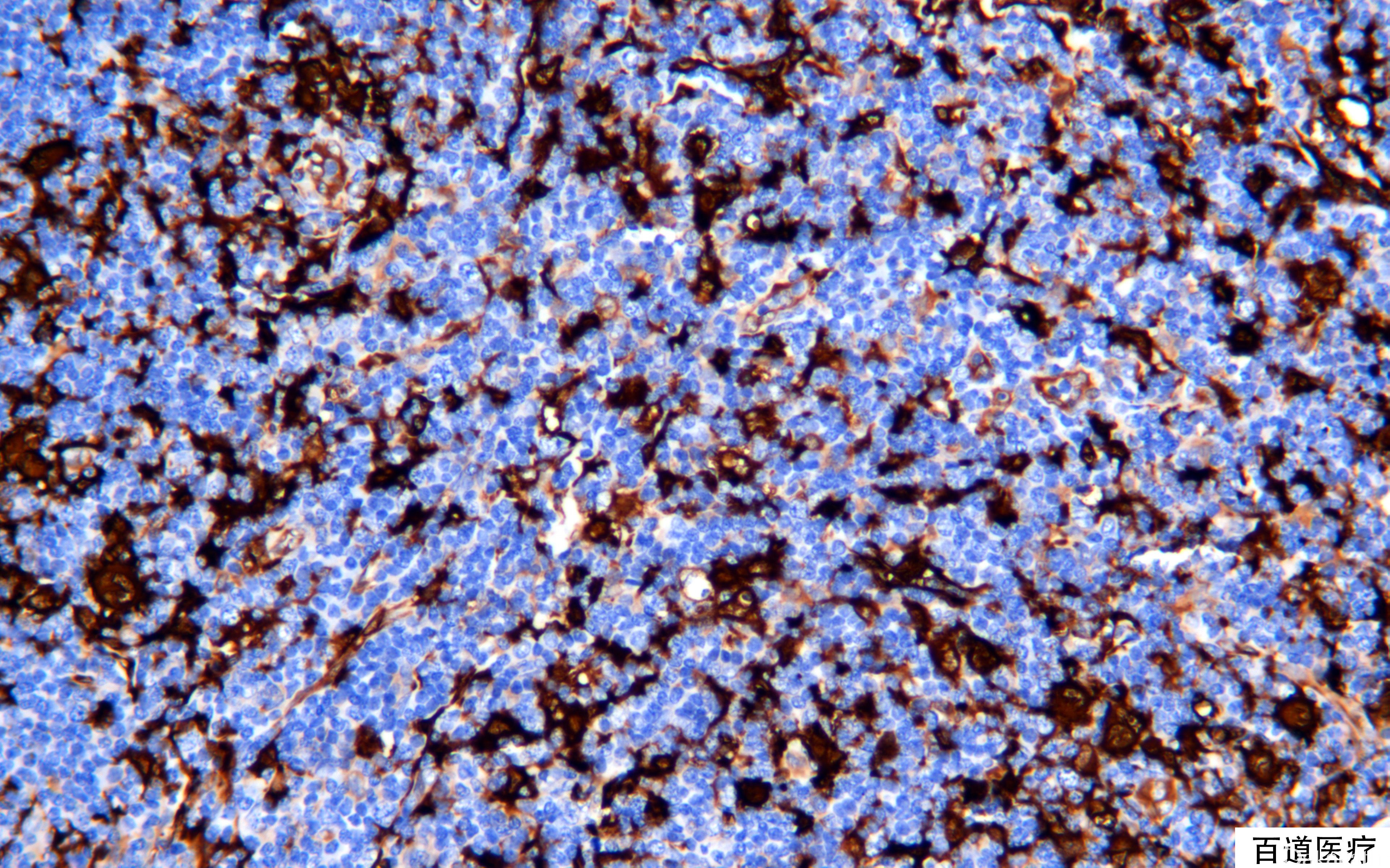 为肌动蛋白结合蛋白,在树突细胞中表达,正常不表达于淋巴细胞、髓样细胞和浆细胞,EB 病毒能诱导B细胞表达该抗原,在 HL 中 RS 细胞阳性。