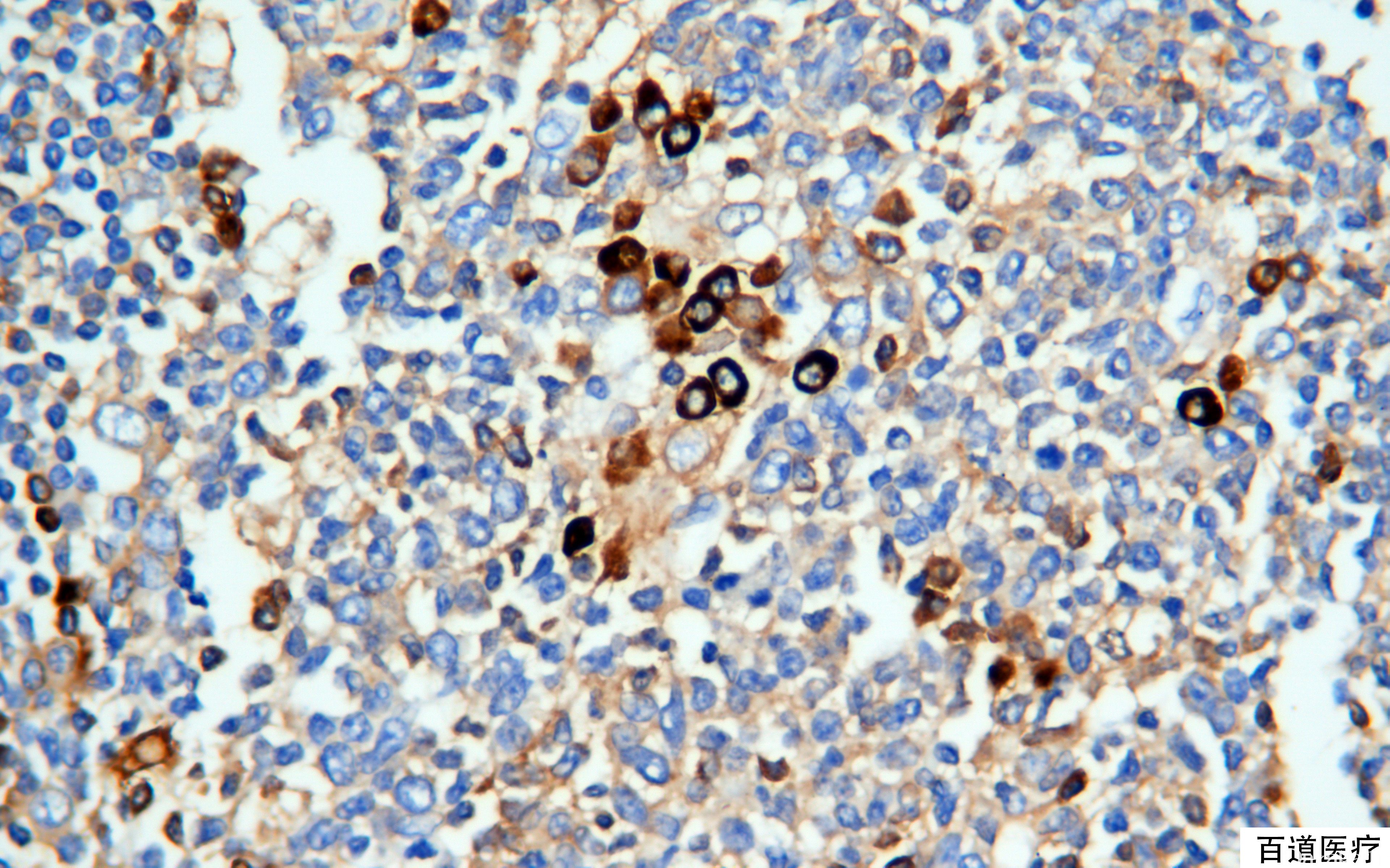 少数阳性(<35%,≥15%的病例阳性): 边缘区 B 细胞淋巴瘤、皮肤 Merkel 细胞癌、脑膜瘤,分泌性、ALK+ 大 B 细胞淋巴瘤