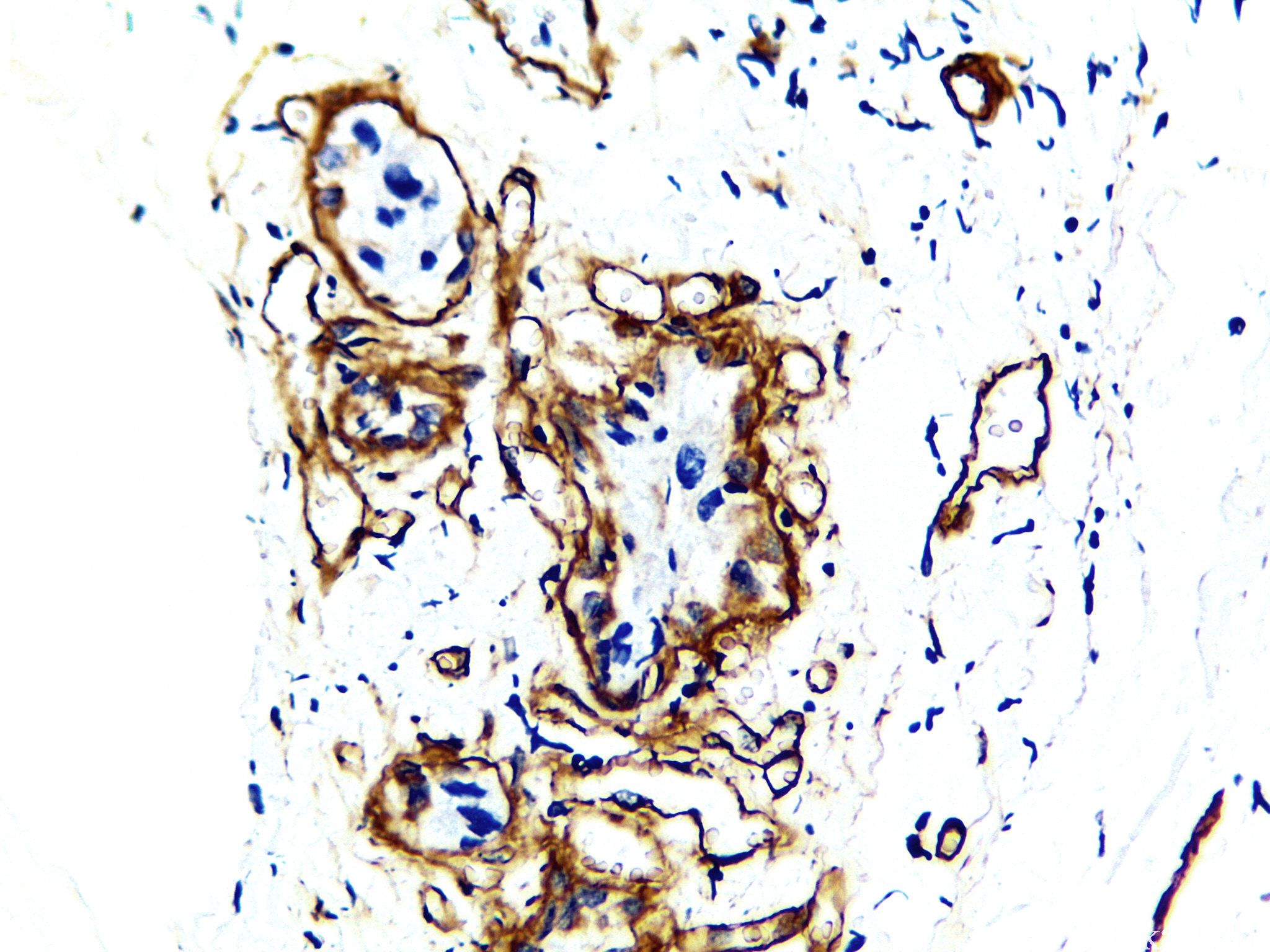 通常阳性(<95%,≥75%的病例阳性): 上皮样血管内皮瘤、腺样囊性癌、睾丸青春期后型卵黄囊瘤、血管球瘤、胃肠血管球瘤、炎性假瘤、硬化性神经束膜瘤
