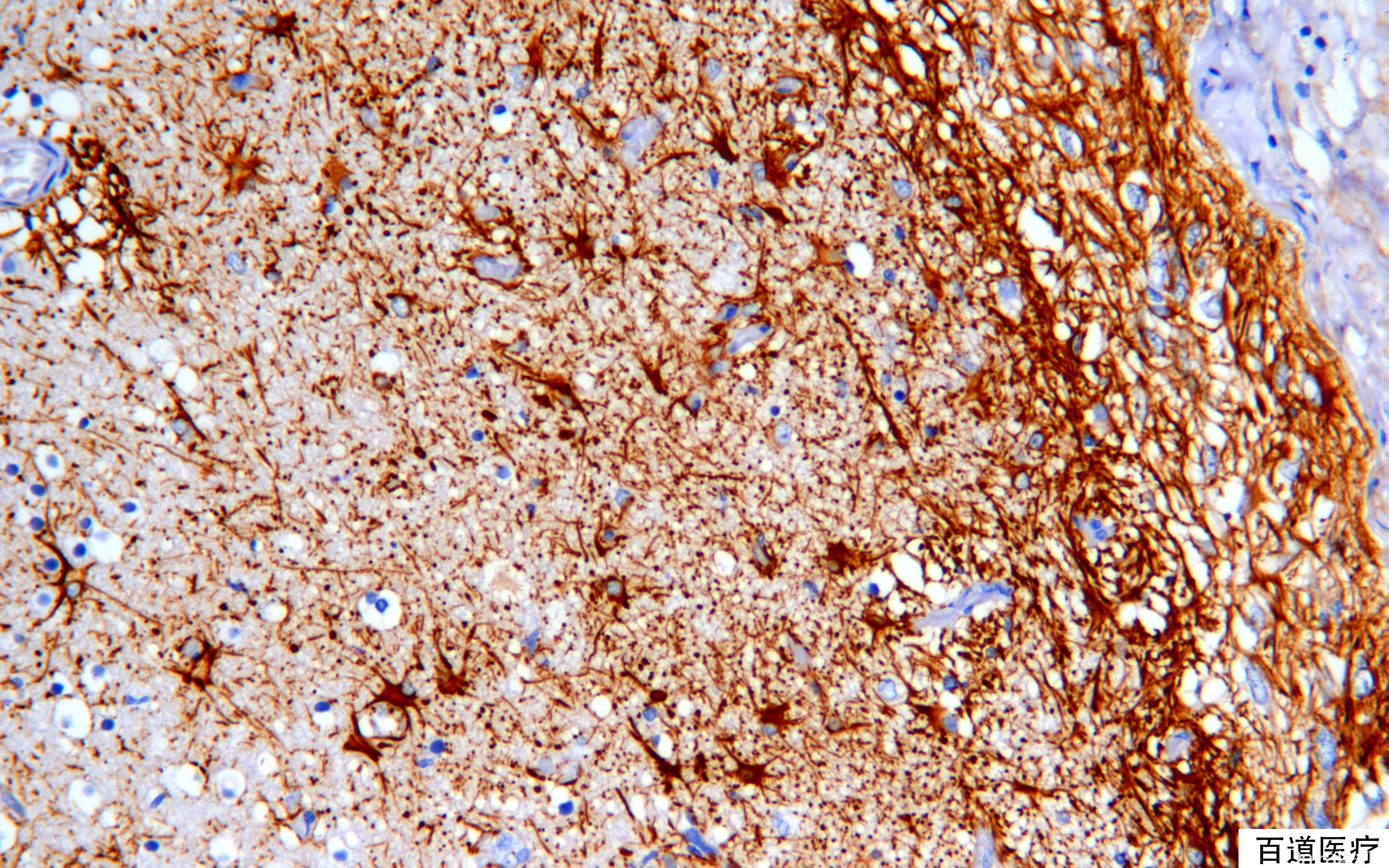 原始神经外胚叶来源肿瘤阳性,如 PNET、髓母细胞瘤、嗅母、恶性畸胎瘤等幼稚神经细胞成分均阳性。