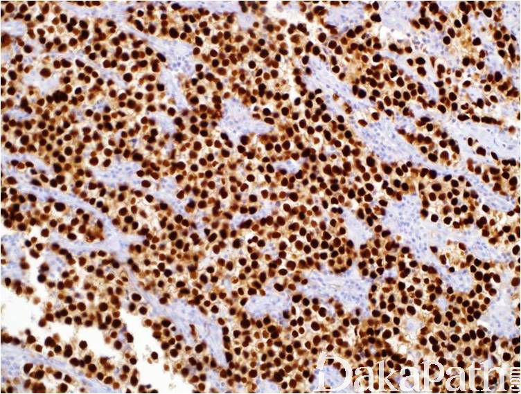 几乎全部阴性(<5%的病例阳性): 黏液性/圆细胞脂肪肉瘤、肾嫌色细胞癌、卵巢子宫内膜样癌、胰腺上皮内肿瘤、结直肠腺癌、恶性黑色素瘤、横纹肌肉瘤,NOS、纤维肉瘤、隆突性皮肤纤维肉瘤、神经鞘膜瘤,NOS、血管周细胞瘤、前列腺腺泡性癌、间皮瘤,NOS、宫颈鳞状细胞癌、乳头状肾细胞癌、皮肤基底细胞癌、肝细胞癌、膀胱尿路上皮癌、肾上腺皮质癌、肾细胞癌、子宫内膜间质肉瘤、副神经节瘤、类癌、恶性混合性苗勒管肿瘤、甲状腺髓样癌、血管瘤、甲状腺滤泡性癌、胃泌素瘤、髓母细胞瘤,NOS、甲状腺乳头状癌、恶性神经鞘瘤、食管鳞状细胞癌、腺泡状软组织肉瘤、经典型霍奇金淋巴瘤、原始神经外胚层瘤、腺样囊性癌、嗜铬细胞瘤、肺大细胞癌、胃肠道间质瘤、睾丸青春期后型卵黄囊瘤、血管球瘤、涎腺腺泡细胞癌、Kaposi 肉瘤、黏液表皮样癌、耳鼻喉鳞状细胞癌、神经纤维瘤、淋巴瘤、乳腺黏液癌、痣,NOS、血管肉瘤、脑膜瘤,NOS、血管肌脂肪瘤、肺鳞状细胞癌、乳腺良性叶状肿瘤、阴道鳞状细胞癌、卵巢黏液性癌、外阴鳞状细胞癌、食管腺癌、黏膜相关淋巴组织边缘区 B 细胞淋巴瘤、室管膜瘤、嗅神经母细胞瘤、胶质母细胞瘤,NOS、胆囊腺癌、乳腺筛状癌、子宫内膜腺癌、皮肤 Merkel 细胞癌、腺瘤样瘤,NOS、乳腺小管癌、脂肪瘤、乳腺伴大汗腺分化的癌、乳腺浸润性癌,非特殊类型、膀胱鳞状细胞癌、滑膜肉瘤、小肠腺癌、弥漫性纤维型星形细胞瘤、卵巢成人颗粒细胞瘤、肾上腺皮质肿瘤,NOS、宫颈腺癌,非特指型、颅咽管瘤,造釉细胞瘤型、卵巢浆液性癌、上皮样肉瘤、肛管鳞状细胞癌、肛管鳞状细胞癌、甲状旁腺癌、胃腺癌、阴经鳞状细胞癌、乳腺浸润性小叶癌、平滑肌瘤、宫颈原位鳞状细胞癌、多形性腺瘤、乳腺髓样癌、肾嗜酸细胞瘤、肺腺癌、胰腺导管腺癌、颈动脉体瘤