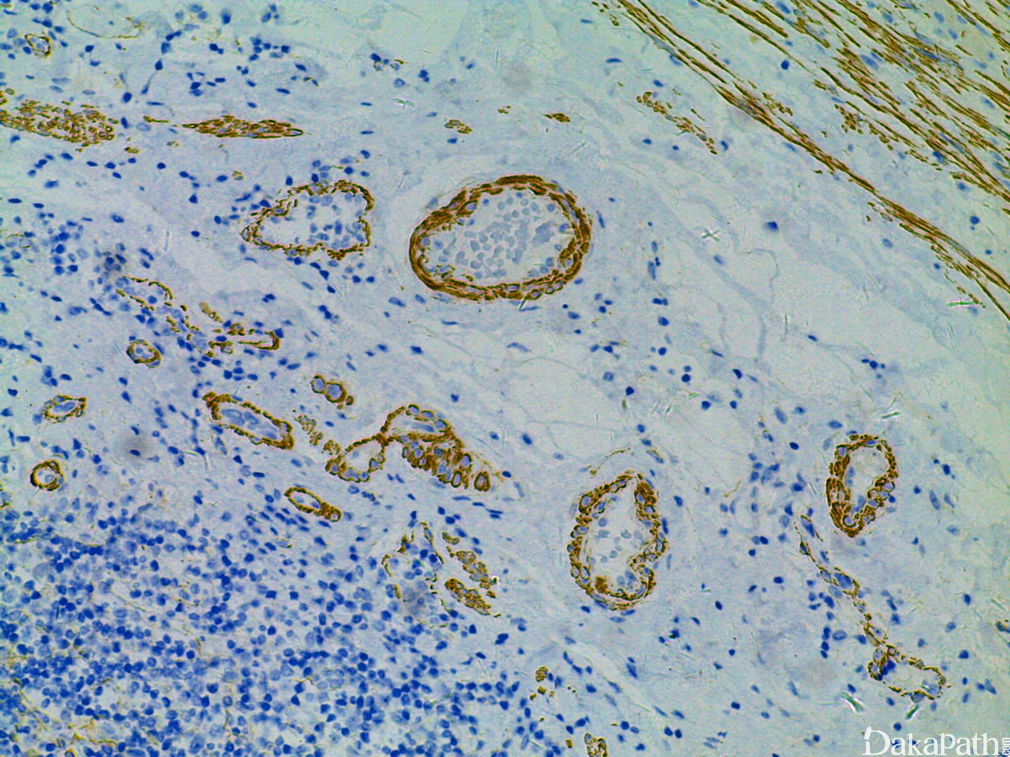 1、平滑肌肿瘤、肌纤维母细胞分化肿瘤阳性。多数 GIST、血管球瘤、肌周细胞瘤也阳性。
