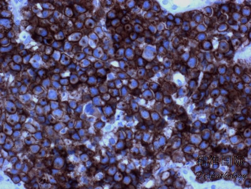 多数病例肿瘤细胞呈现间变性形态(园或椭圆形核、核不规则、显著嗜伊红核仁、丰富胞质),但也可呈现多形性或免疫母样细胞形态。