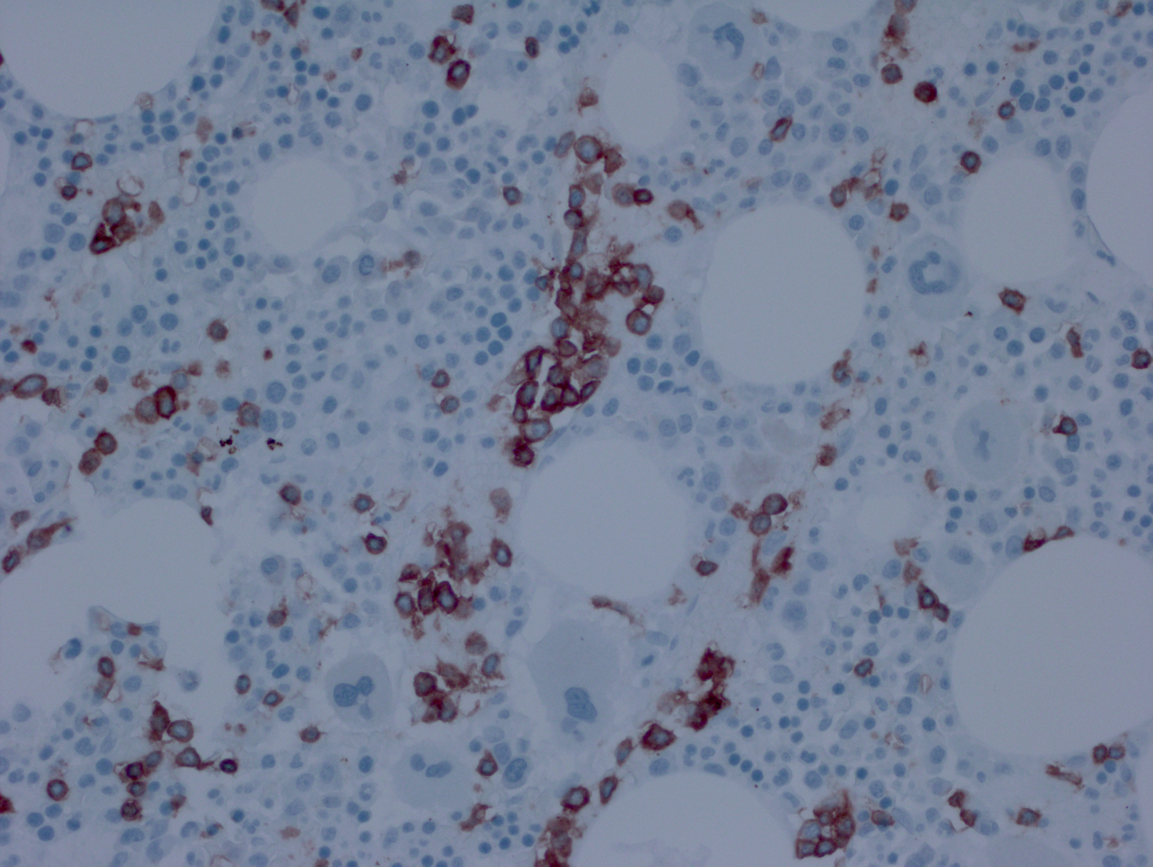 T 细胞大颗粒淋巴细胞白血病 (T-LGLL):肿瘤细胞分布与 HSTL 有相似之处,脾脏红髓和肝窦侵润。但骨髓侵犯以间质为主,细胞表达 CD3. CD8. CD57. TCRαβ、TIA1. 粒酶B。外周血淋细胞减少。临床过程惰性。