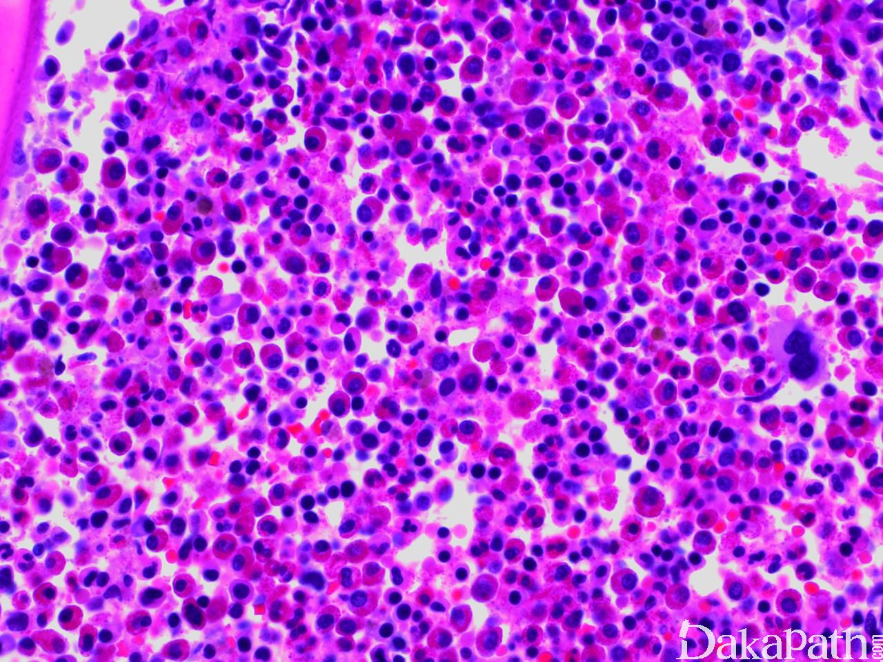 4. 骨髓细胞密度增加,部分原因为嗜酸细胞增生,大多数病例嗜酸细胞分化成熟正常。红系和巨核系一般正常。
