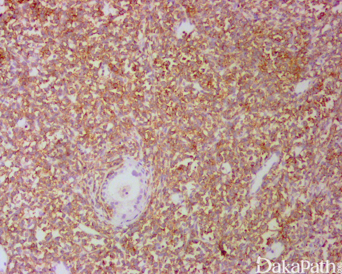 - 细胞形态及免疫表型同其它部位鼻型结外 NK/T 细胞淋巴瘤,EBV 常阳性。